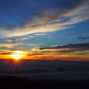 雲海からのサンライズも見事。影富士ならぬ影マウナケアを見られたのも思いがけずでよかったです。