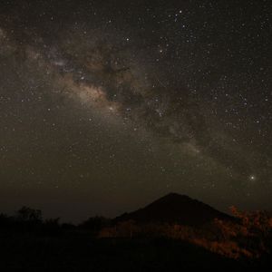 遠くにキラウエア火山の噴火の様子が伺え空には星が…