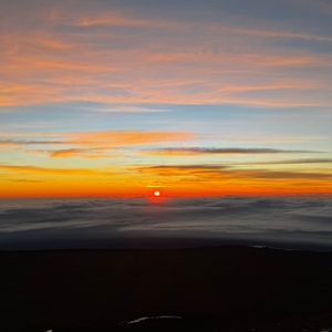 当日は平地でかなり曇っていて、夕日、星空共に見られるか不安でしたが、マウナケアが雲より高い位置にあるため、雲海の中で夕陽を見ることができとても幻想的で素晴らしかったです。