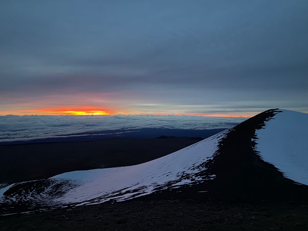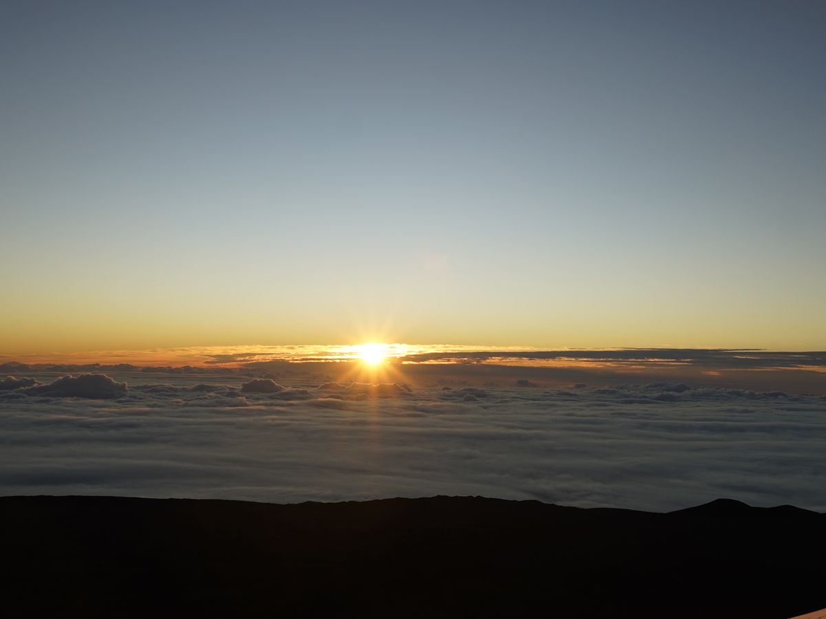 その後、マウナケア山頂のすばる天文台では夜明けを迎え星は見えませんでしたが、ご来光も拝みました。朝日の光を浴びた天文台群が凛々しく宇宙に挑んでいる姿がかっこよかったです。