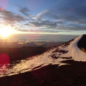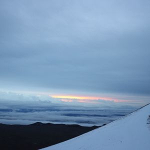 そして1か月ぶりにゲートが開いていて、山頂へ。ラッキーでした。この時期はオニズカまでの日が多いそうです。雪の残る山肌と初めて見る日の出。本当に綺麗でした!天気が良かったので裏マウナケアもバッチリ見えました。