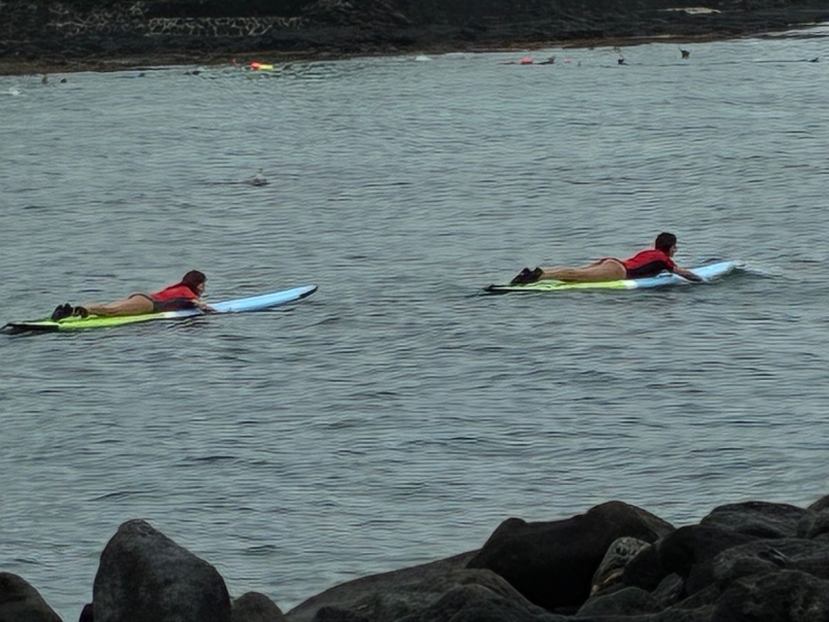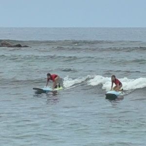 友人と2人で参加しました。私は全くの初心者でしたが、立ち方からパドルのやり方まで丁寧に教えて頂き、安心して楽しめました!なんとボードの上にも乗ることができました!サーフィン好きの友人には中級者以上のスポットにも連れて行って頂き2人とも大満足でした!サーフィン以外にもハワイ島の生活、美味しいレストラン、オススメ観光場所などローカルの方しか知らない情報もたくさん教えて頂き、最高のハワイ旅行になりました!また必ず再来したいと思います!アロハ!!