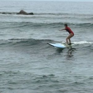 サーフィンを英語で教えてもらいながらしました。すぐ波に乗れて楽しかったです。写真も撮ってくれました。