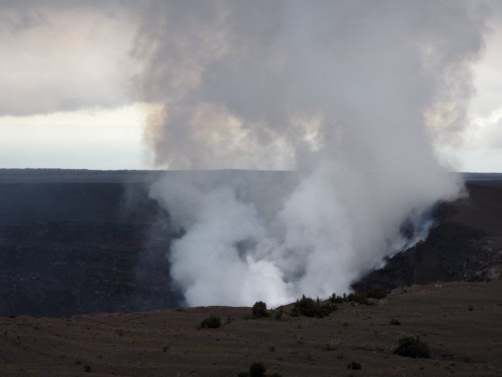 最後はキラウエア火山でラヴァチューブやスチームを体験。数日前に噴火したばかりとのことで、赤い溶岩は見れないだろうと思っていましたが、なんと運良く小規模な噴火に遭遇しました。