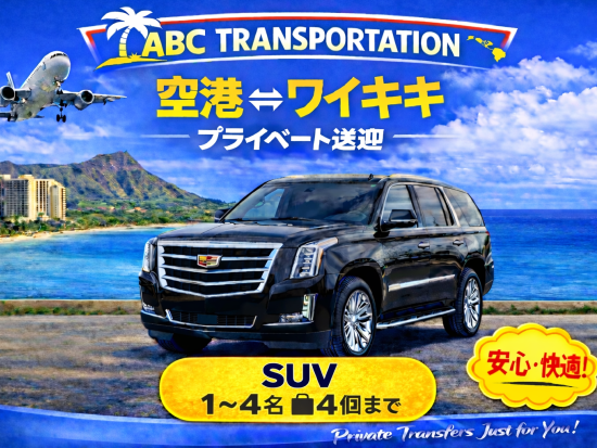 ダニエル・K・イノウエ国際空港(旧ホノルル国際空港)⇔ワイキキ地区ホテル 貸切送迎<24時間受付/1~4名>by ABC Transportation