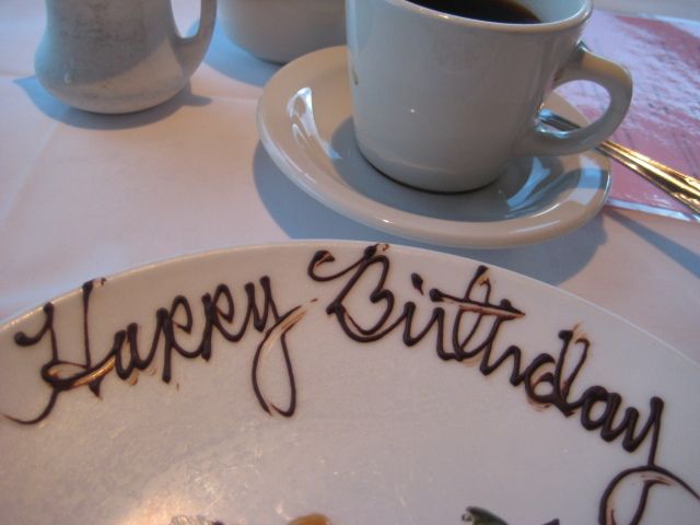 誕生日と伝えていたところ、デザートに名前を書いてくださいました!