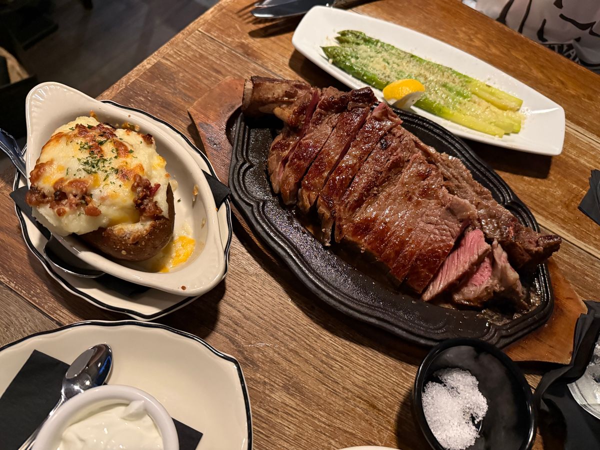 トマホークステーキのコースを頼みました。二人でシェアしたけど、食べきれませんでした。お店の方もちょくちょく声をかけていただき楽しかったです
