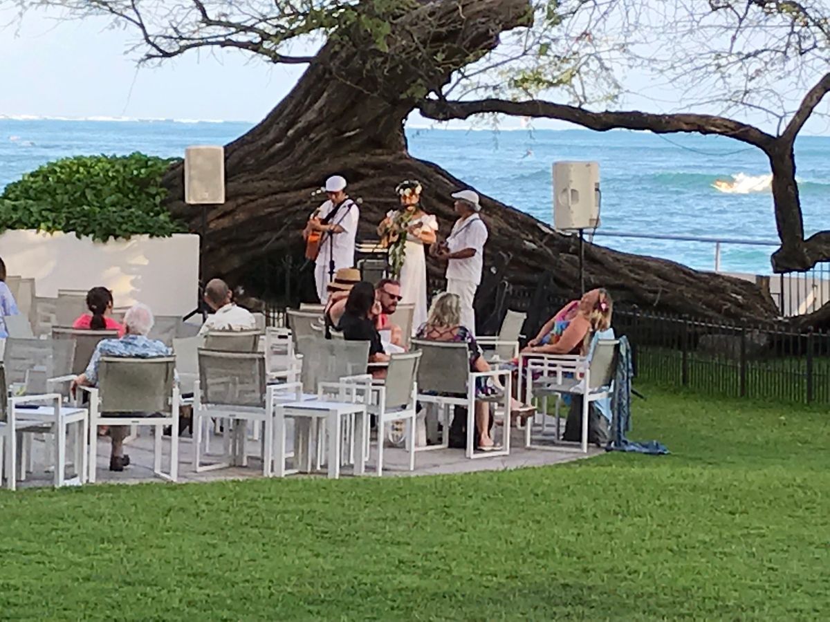 テラス席でフラダンスを眺めながらの食事は最高でした。