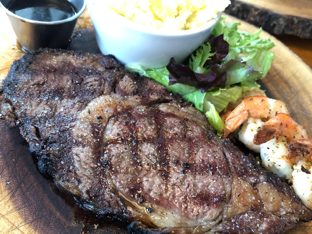 ハワイ初日に14時に予約していきました。べるとらで、予約していたので、印刷したのを渡すだけで、席に案内されました。あとは、ドリンクは別料金で頼む感じてす。ランチタイムからズレていたので、お客さんはほとんどいなくて、すぐ料理も出てきました。店員さんは気配りが上手で、カメラ撮ってくれました。料理はボリュームたっぷりで、肉とガーリックシュリンプ、マッシュポテトでしたが、マッシュポテトは食べきれませんでした。肉は燻製の良い香りと、柔さが半端なくて、この店に入って良かったと思いました。