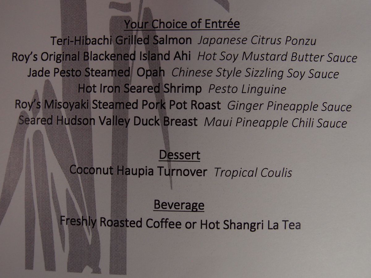 ロイズレストランだけのものは、店がワイキキの街中にあり、食事だけを楽しむものでした。今回頼んだものは、ハワイカイのロイズレストラン1号店で素晴らしいサンセットオーシャンビューを見ながら食事ができるものでした。料理もおいしく雰囲気の良いレストランで気持ちよく食事をすることができました。