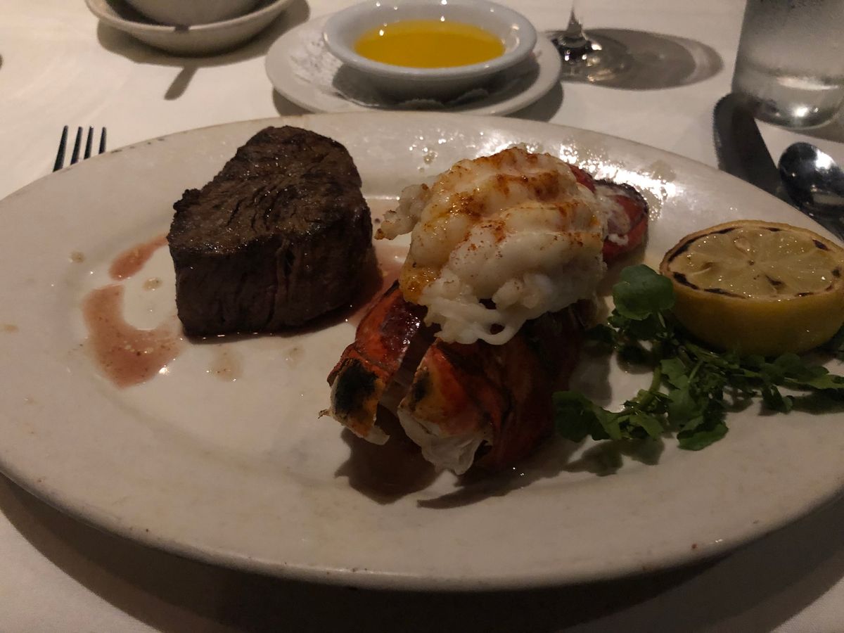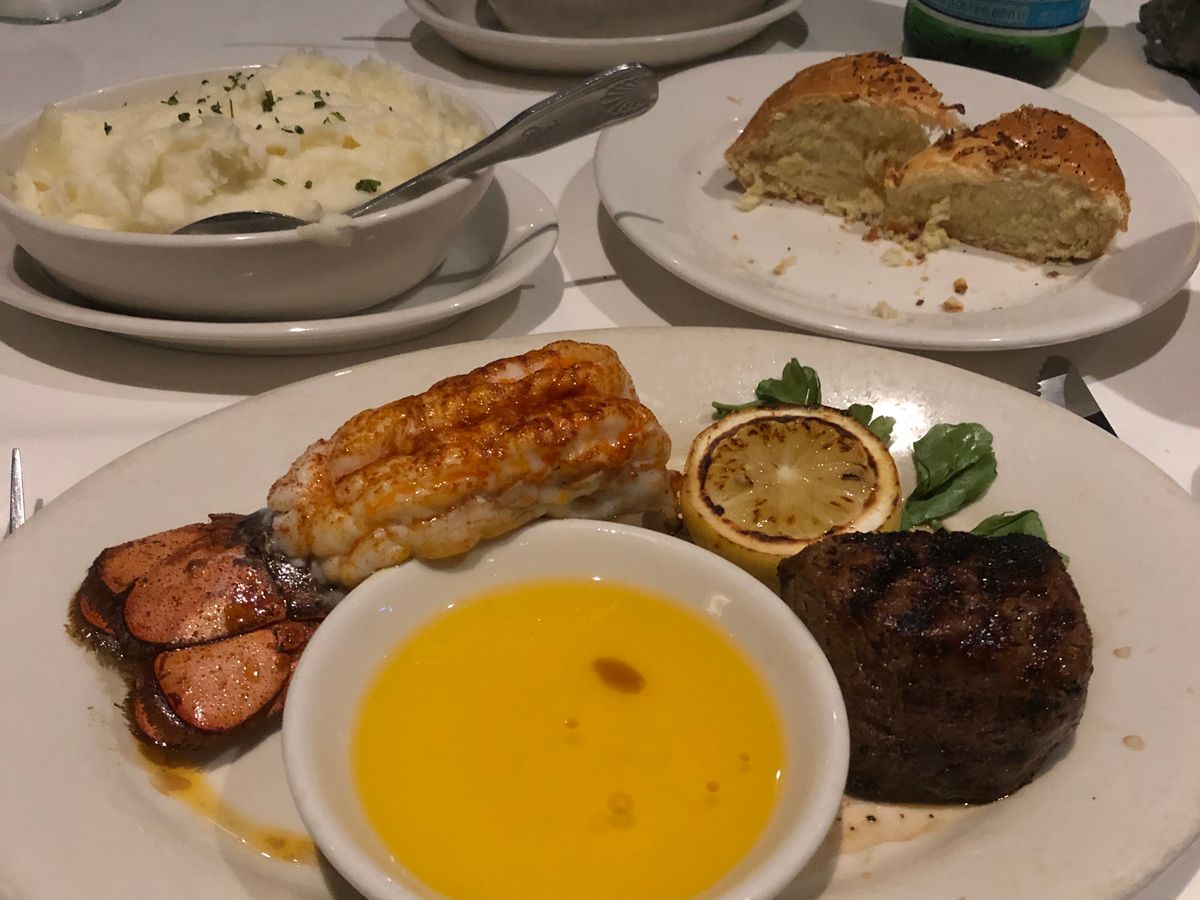 ステーキは非常に美味しい。前菜のシーフード盛り合わせもボリュームあります。デザートの味は普通。全体的にボリュームあるのでスライスされたパンが出てきても全て食べてしまわないように。がっかりしたのは座席、予約をして贅沢な食事をするのに案内されたのは店の外にセッティングされた席、衝撃でした。買い物客がしきりに目の前通り雰囲気台無し。