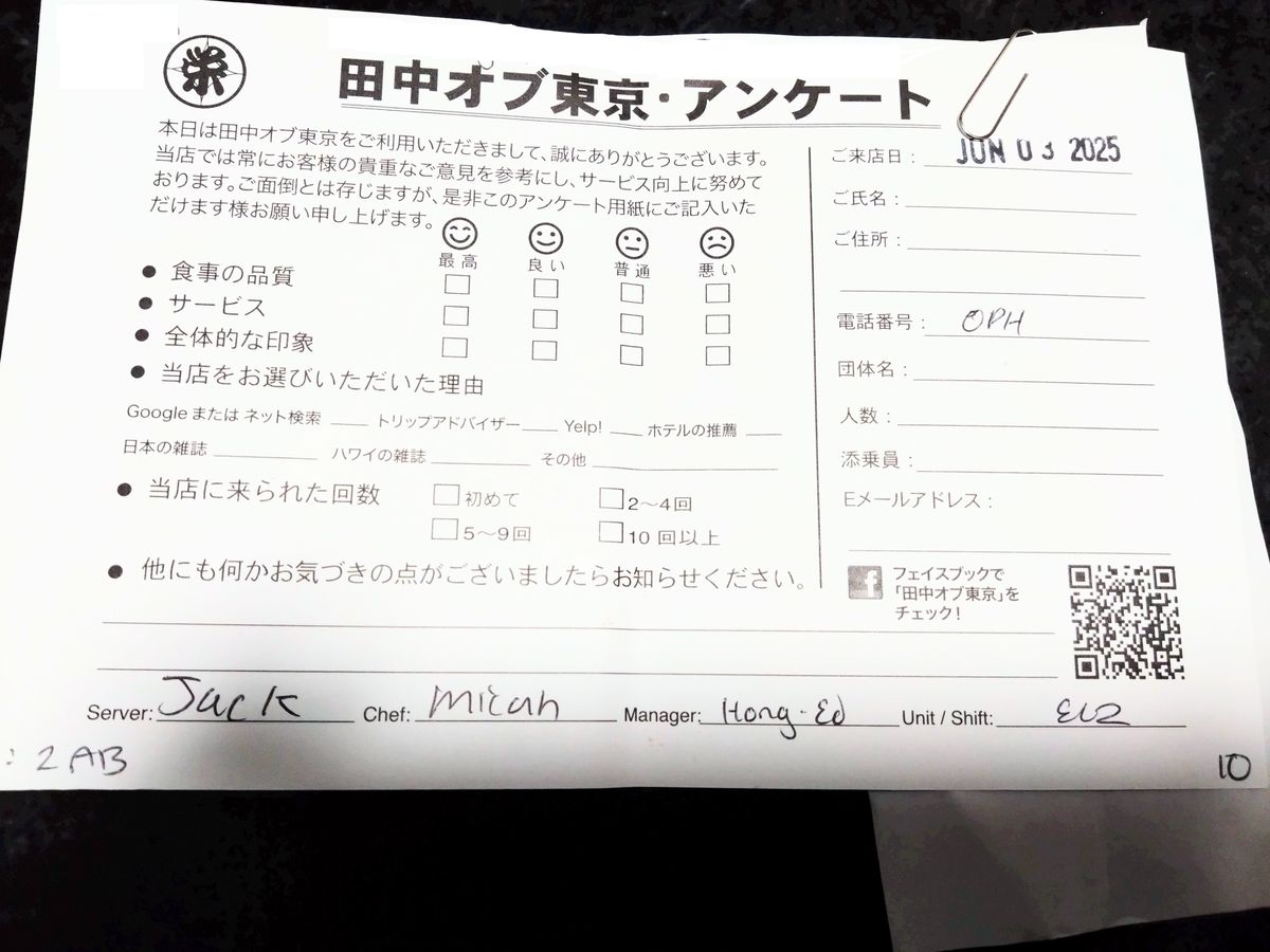 最終日にお伺いいたしました。ハワイの雰囲気の中、高級感もありとても良い食事でした!またいきたいと思っています。