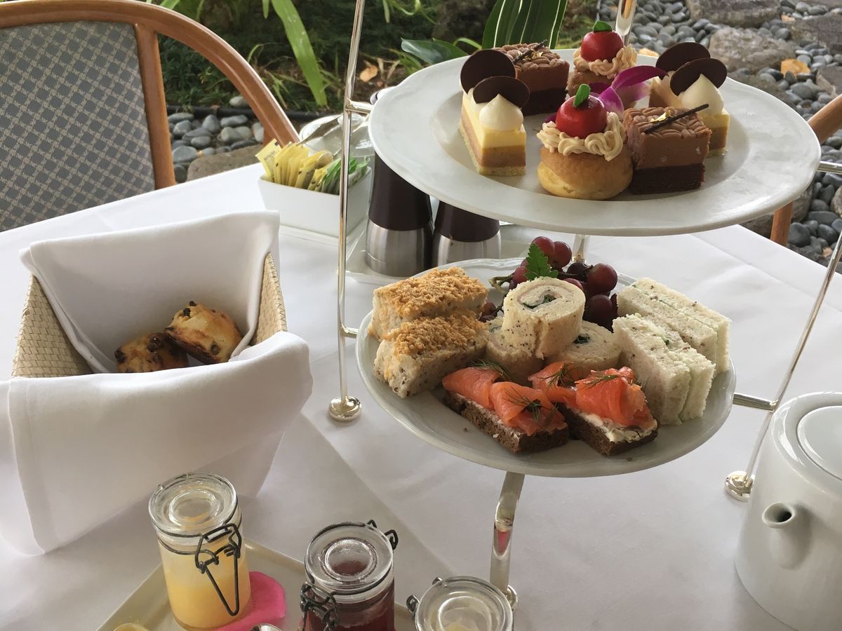 海やダイアモンドヘッドを見ながらアフタヌーンティー。