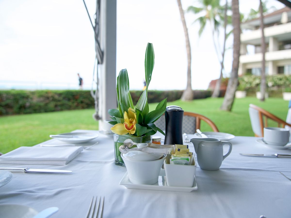 ヒルトンハワイアンビレッジに宿泊していましたが、2回目なので、日陰を見つけて、20分くらい歩いて、オーキッドに到着。予約の10分前に着きました。見晴らしのよい席でしたが、スズメが来るのが気になりました。従業員の対応も丁寧でした。個人で予約するより確かで、チップも含まれているのが、よかったです。ホノルル到着当日に、ホテルの部屋の用意が整うまでの時間を有意義に過ごせました。妻も喜んでくれました。