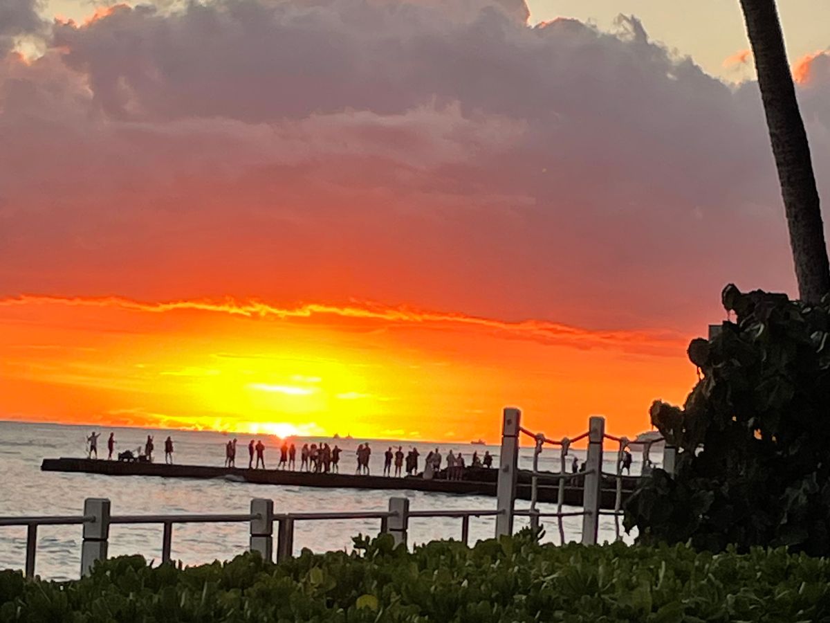 ちょうどビーチに木がある席だったのが少し残念でしたが、ハワイ最後の夜にサンセットを見ながら素敵な夕食を摂ることができました。