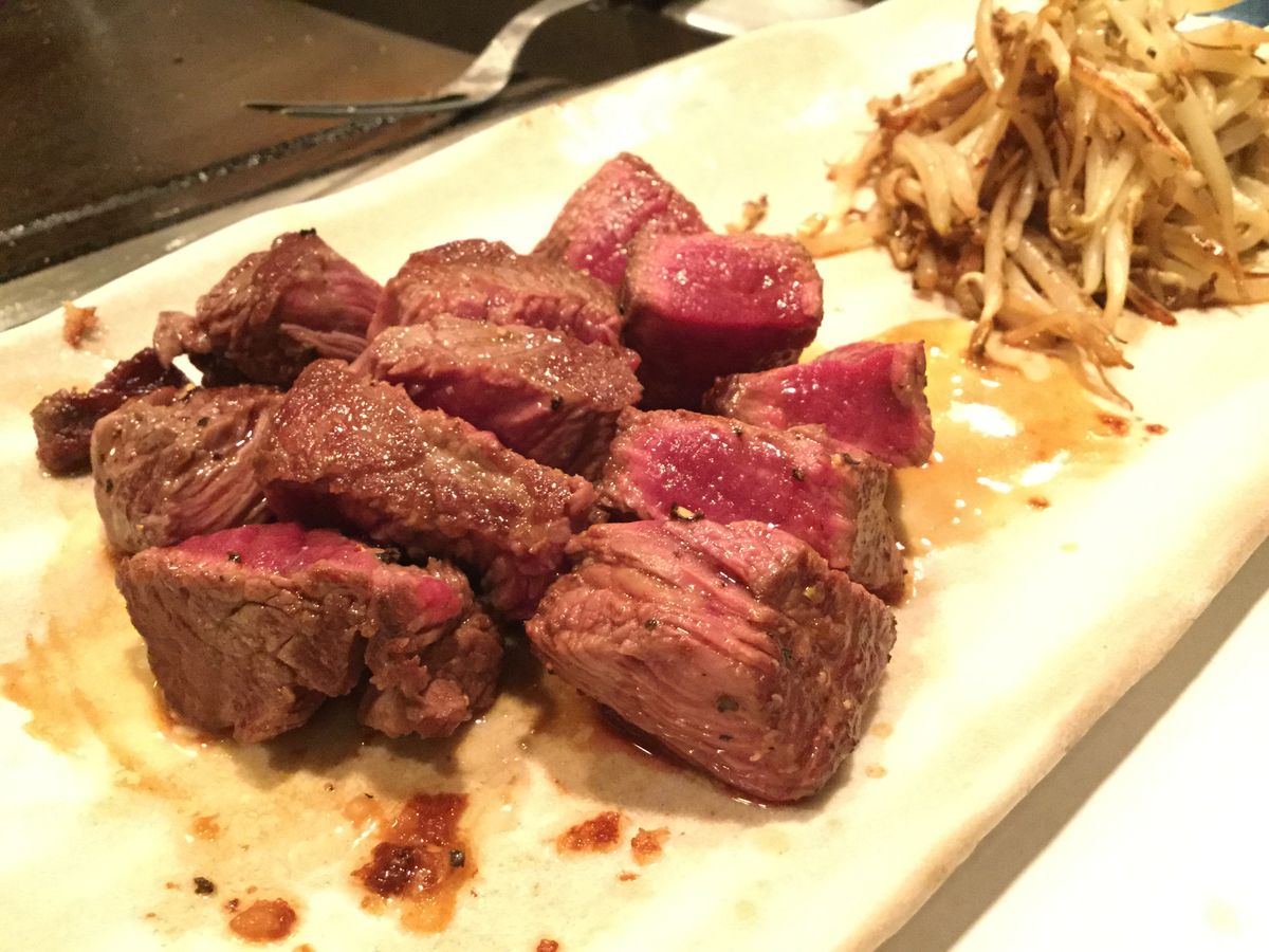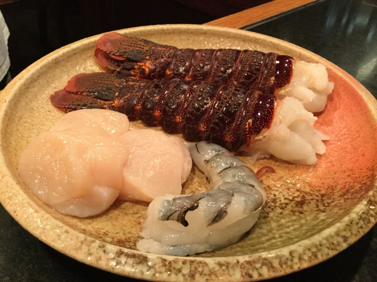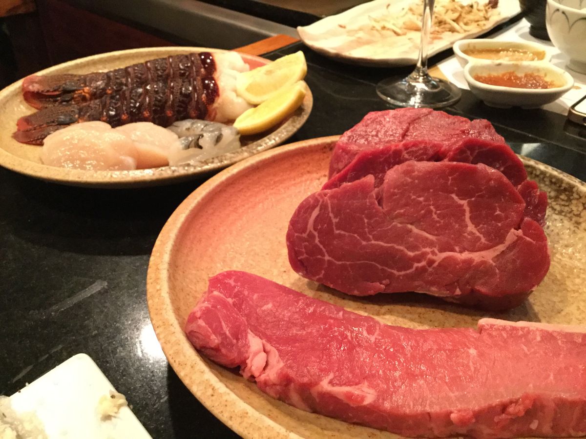 鉄板焼きのスタートのときにも調理師さんがきちっと挨拶してスタートしてくれたのが好印象です。とても真面目な仕事ぶりです。U.S.黒毛牛フィレは思ったよりも柔らかで味も良かったです。ロブスターは甲羅から見ると伊勢海老の仲間ではないでしょうか。ハサミはなく尾の身だけです。もちろん美味しくいただきました。