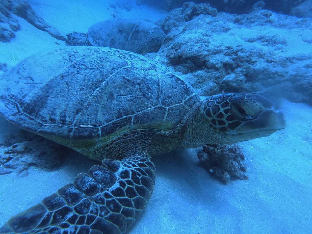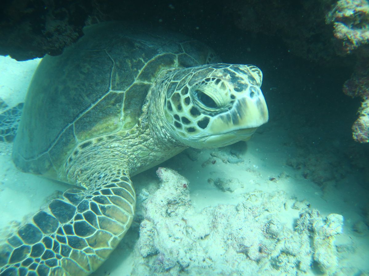 ウミガメにこんな近付けたのは初めてなんじゃないかな?コザメやエイにも遭遇できてとても素敵な思い出になりました。