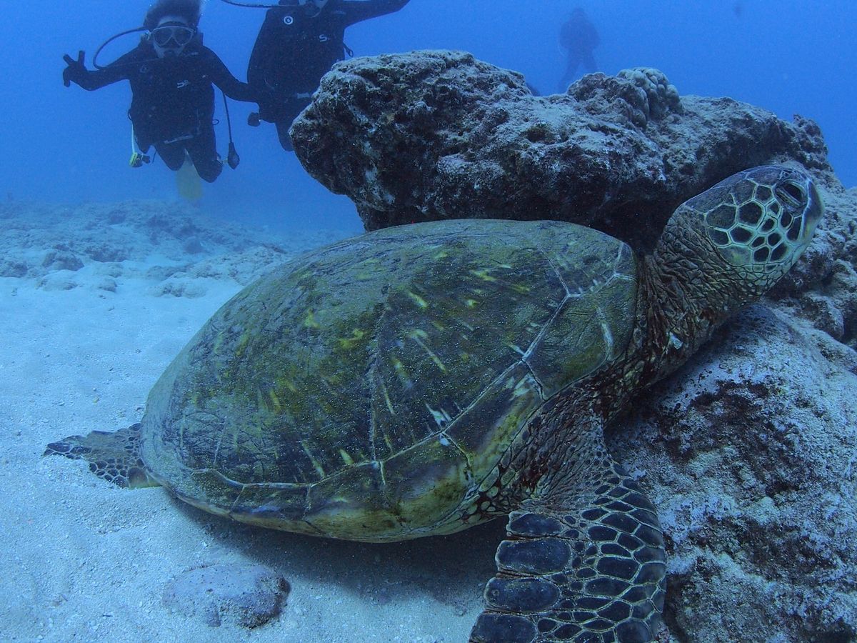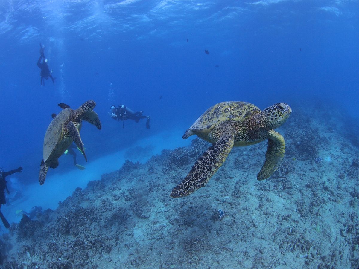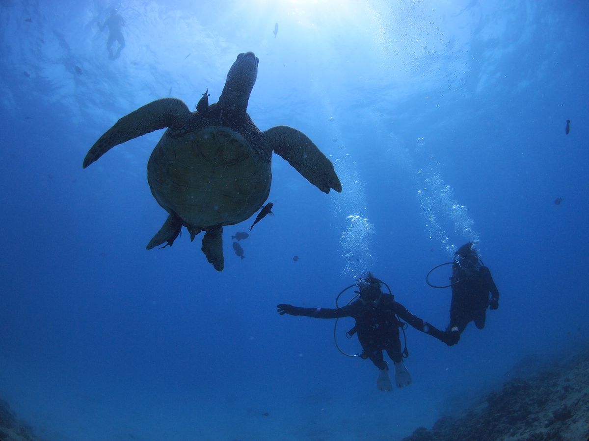 ウミガメと遭遇できる可能性が高いとのことで参加しました。いままでのダイビングではマンタ、ジンベイザメに遭遇できなかったり、イルカも遠くを泳いでいるのを見るだけで、期待通りのダイビングはありませんでした。今回も期待通りにはならないかもと思っていましたが、ウミガメが居るは居るは、また顔を見合わせるほど大接近できるなんて期待以上で感激しました。ウミガメってなんてかわいいのでしょう。スタッフのみなさんのおかげで、安心してもぐれました。ありがとう御座いました。次に訪れた時もまた参加したいです。