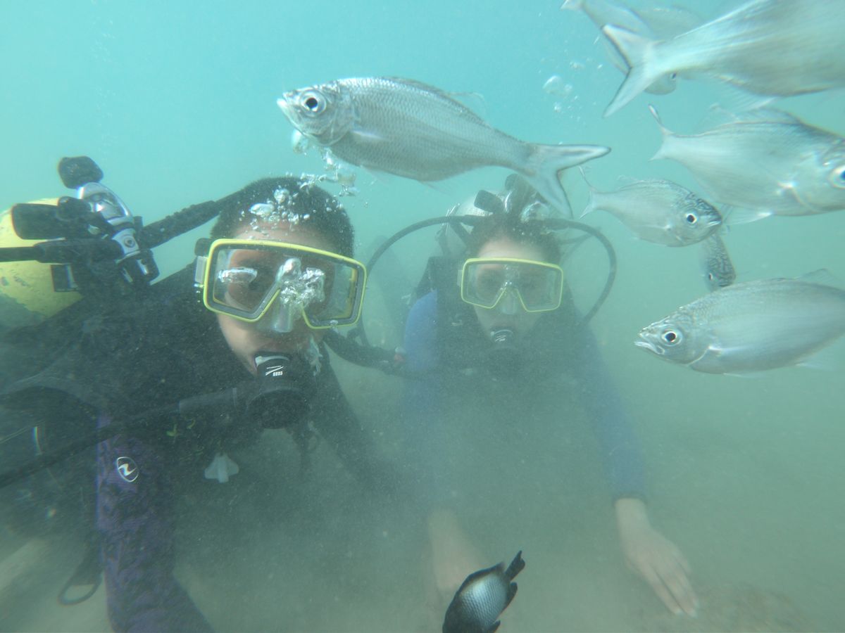 2人ともダイビングが初めてで不安でしたが、インストラクターのアツシさんが心底丁寧にご指導いただいたお陰で不安が解消されて楽しさいっぱいのダイビングになりました!