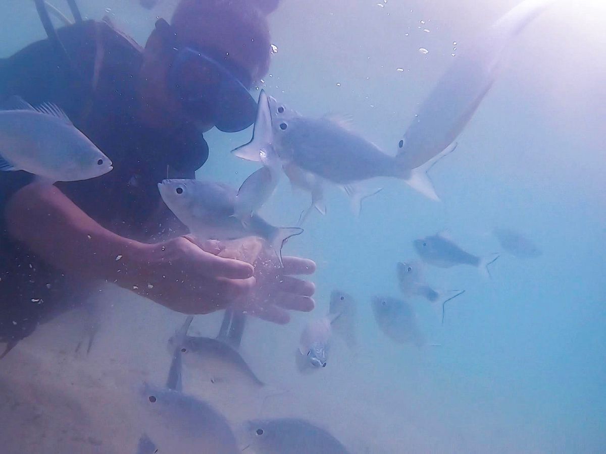 最初は恐る恐るですが、途中からは魚を見る余裕も。