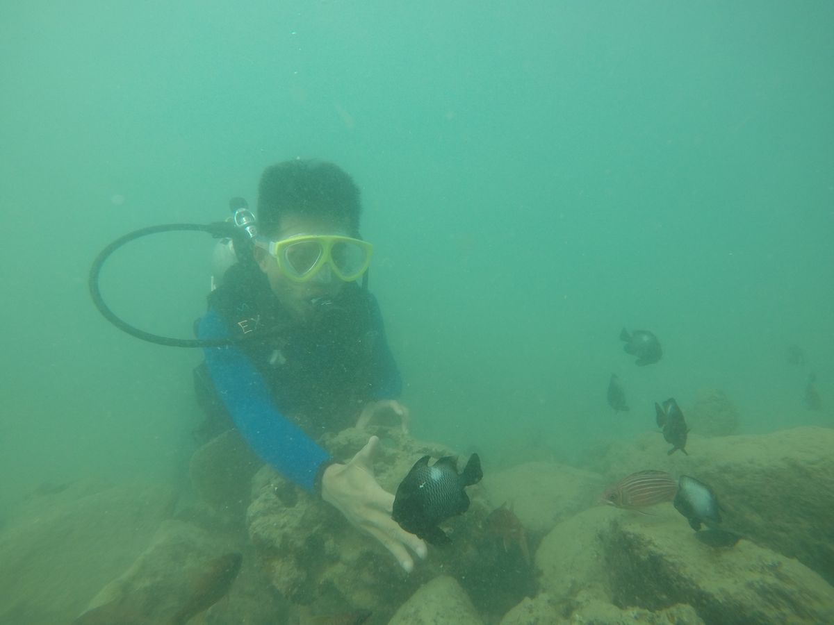 2ダイブ目は少し深いところにチャレンジしました。日本では見ることができない魚をたくさん見ることができ、とても素敵な経験になりました。