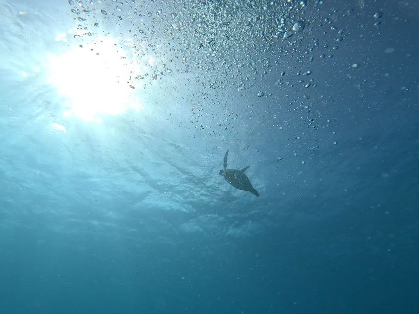 潜行ロープの下でじっとしている大きなウミガメや、休憩中に息継ぎに上がってくる姿は、何度見てもテンションが上がる瞬間だと思います。