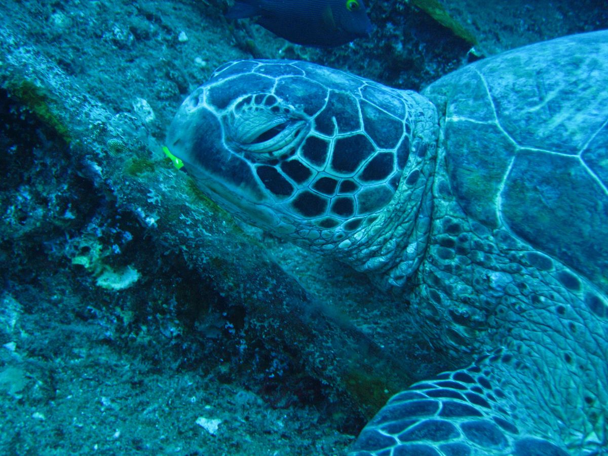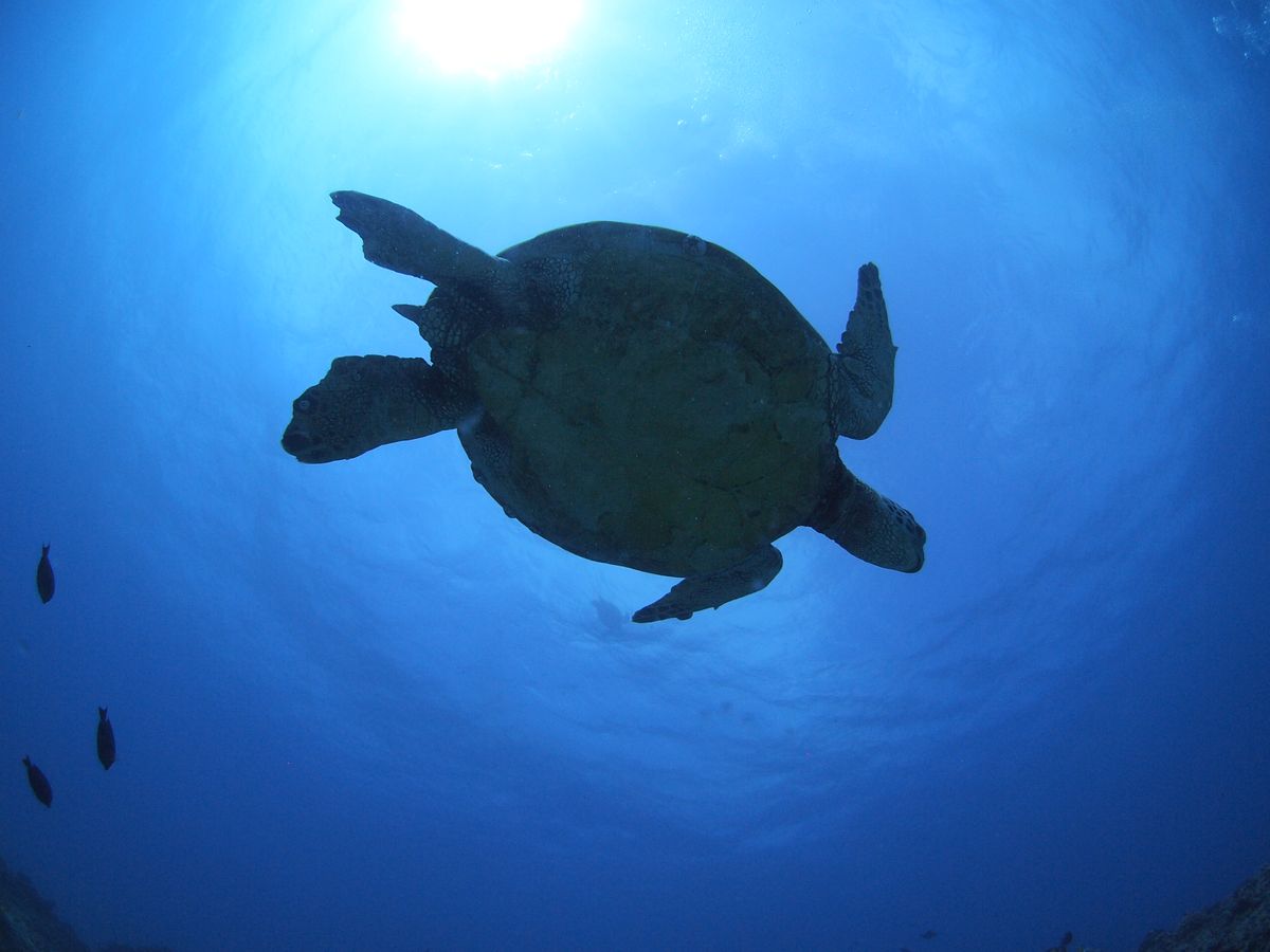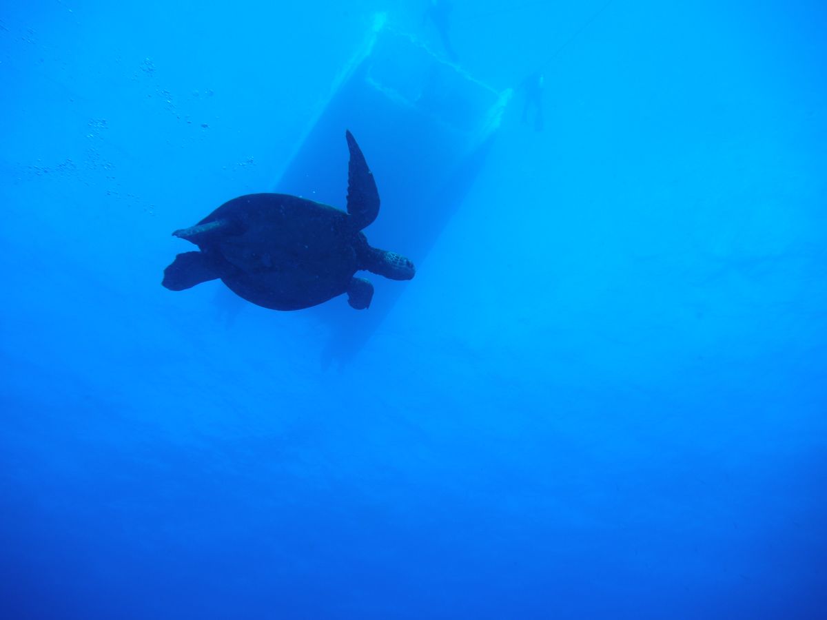 沈没船の甲板でウミガメが休憩しててとっても可愛かった♡