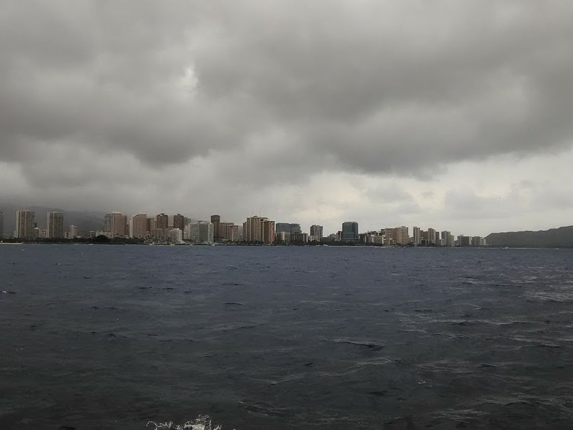 ダイビングポイントが近いので、ホテルピックアップからポイントまでのアクセスが短時間で済みます。海の上からはダイヤモンドヘッドとワイキキのビル群が一望できます。今回は天気がいまいちで残念でしたが、晴れていれば気持ちがいいと思います。出港する港はアラモナアセンターの近くです。船は乗り合いです。
