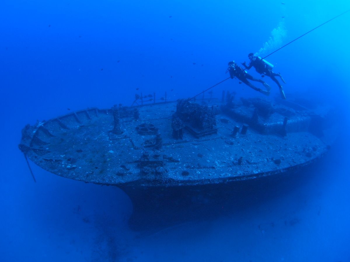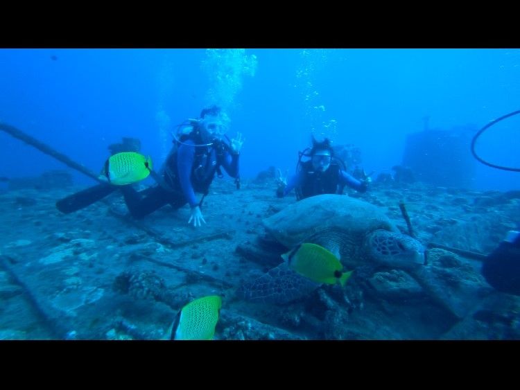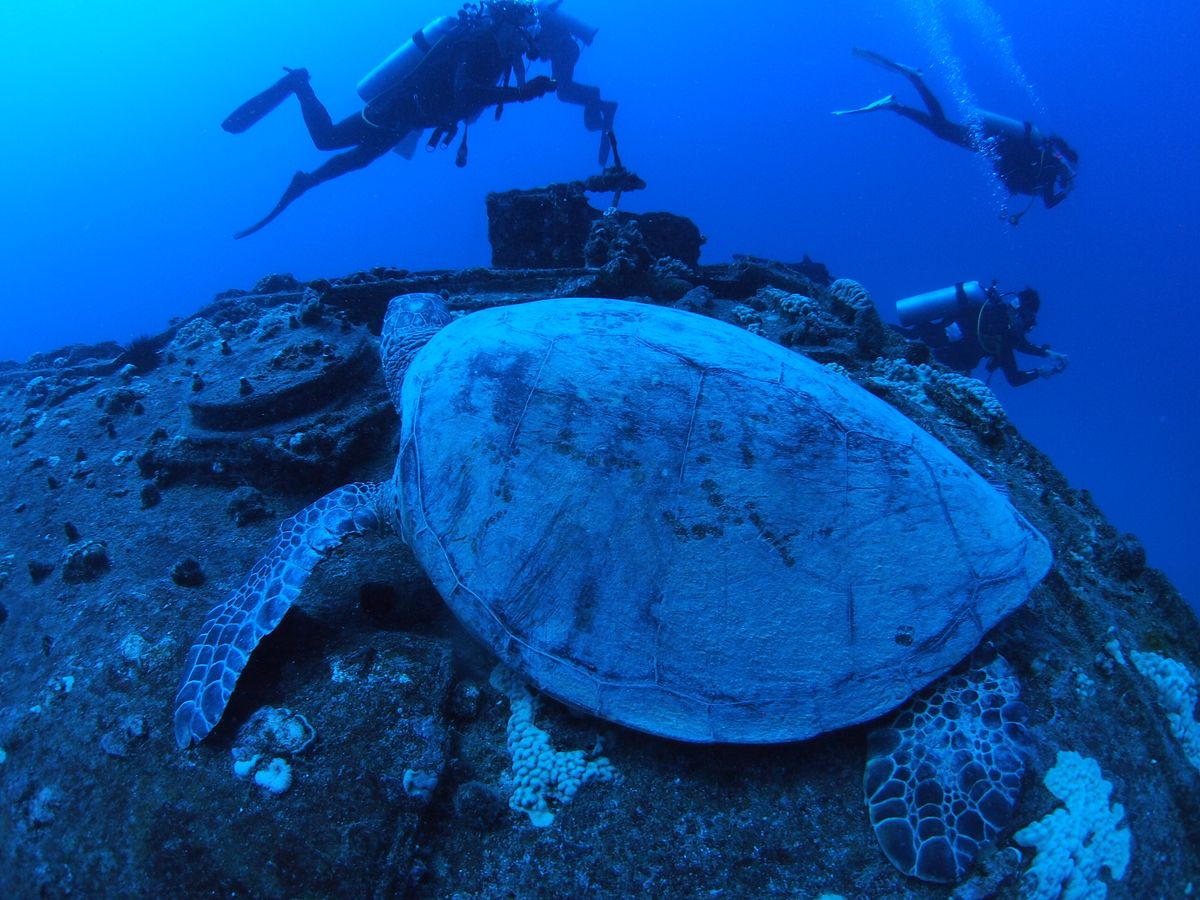 沈没船に潜ると、ウミガメ、サメにも遭遇し、テンションマックス!