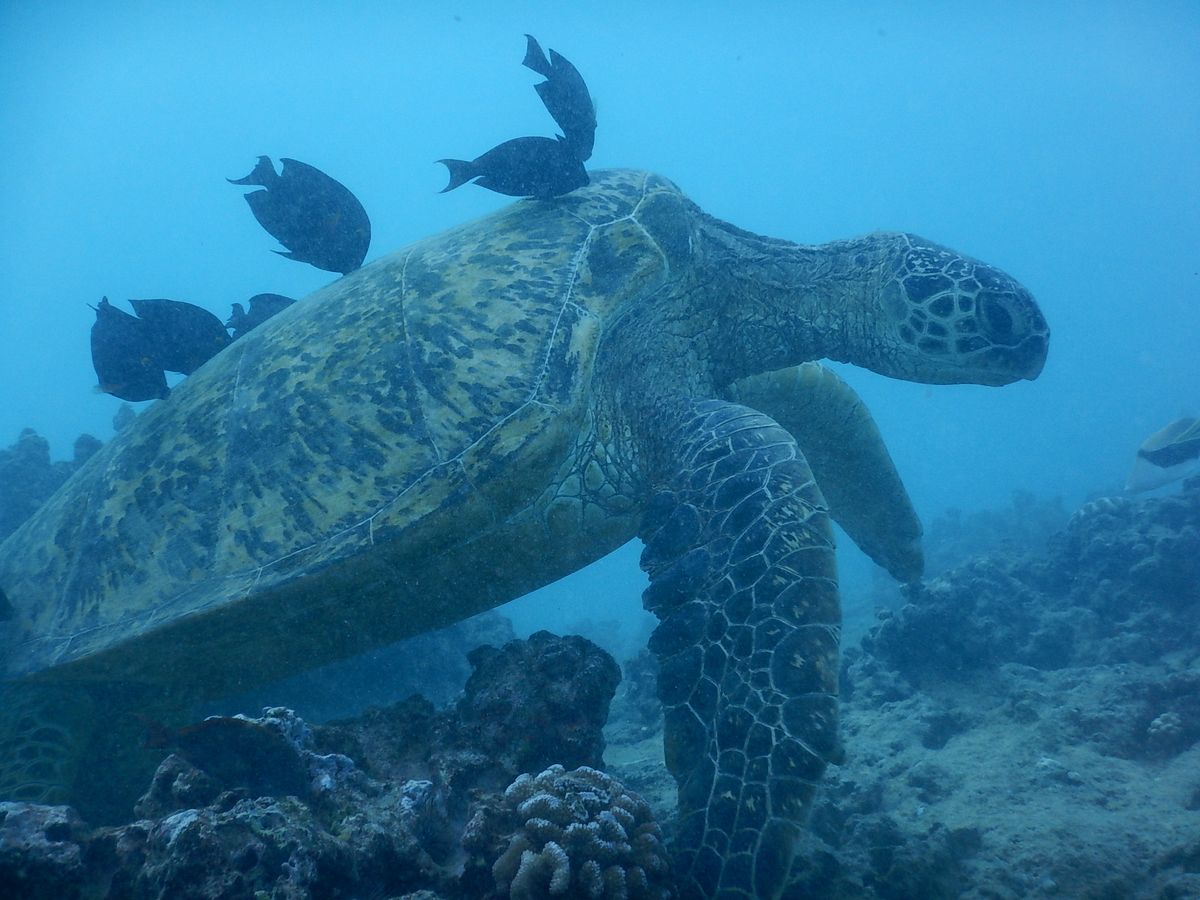 沈没船に亀が休んでいるのを見られました。