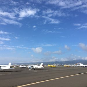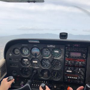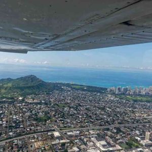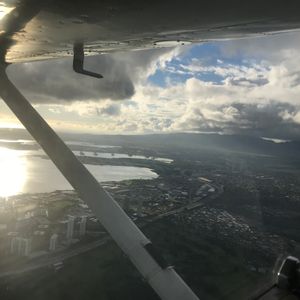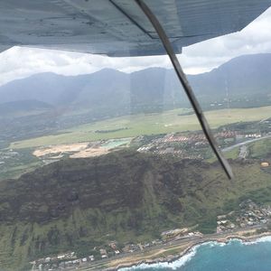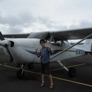 ホテルまで迎えに来て下さり、空港まで会話をしながら向かいました。日本人でしかも私達の住んでいるローカル線を知っていた事で妙な親近感をもってしまいました。空港に近づくと離着陸する飛行機が次々と間近で見られ、4歳の息子も大興奮!オフィスで説明を受け、そこからもう一人合流し、再び車で少し移動。降りると目の前にはたくさんの小型機が!!かっこいい!!写真も撮っていいですよ、と言われ、大喜びで次々と撮影!セスナと小型飛行機の違いやヘリコプターとの違いなども知ることが出来て勉強になりました。はじめに母と息子が後ろ座席に座り、私が操縦席へ。後から合流した方が操縦士の先生でした。説明を受けて、いざ離陸!あっという間に上空へ。みるみる小さくなる街並みとどんどん近づいてくる雲。地平線を目印に、な、なんとほとんど私一人でハンドル操作をさせてくれました!!生まれて初めて乗って飛んだと思ったら30分操縦して隣の空港へ。4人でヘッドフォンとマイクで会話をしたり、先生があれがドールプランテーションだよとか、バスガイドならぬセスナガイド?であっという間の30分でした。途中、写真も撮ってくれて、こんな貴重な写真、絶対に撮れなかったと感激でした。操縦は楽しく感激と感動もしたけれど、降りたら汗でびちょびちょでした。操縦を交代し無事帰還。セスナから降りる時には迎えに来て下さった方がいらして、手伝って下さり、最後にフライト証明の立派な証書を下さり更に感激!もう、二度とない体験ができました。帰国したらちゃんと勉強して、一人でも飛ばせるように資格を取ろうと思ったくらいです。ハワイに来たからこそ味わえた最高のツアーでした!
