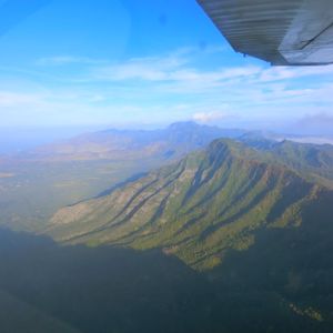 山の鮮やかな緑や濃いブルーの海の色はとても美しく感動に値するものでした。パイロットはとても感じのいい方でしたのでもっとたくさんお話がしたかったのですのが自分の英語力があまりに乏しく残念でした。