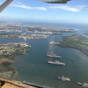 空からのパールハーバーの眺め…ヘリ操縦体験、ぜひお勧めです!