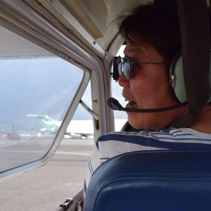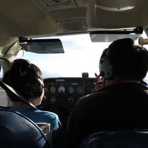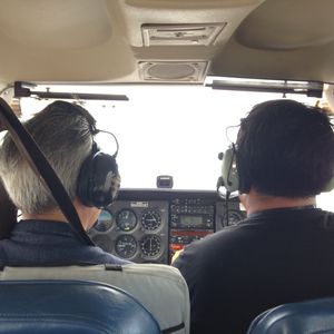 「地上での講習」という記載があった為てっきり部屋で椅子に座り話を聞くのかと思っていたら、いきなりセスナに乗り込み操縦に必要な場所の説明を軽く、時間にして3~4分くらいでしょうか。インストラクターの先生は現地の女性の方でタンクトップにビーチサンダルというなんともラフな格好でしたが笑顔の素敵な優しい方でした。飛行中は音がすごく話は出来ないので英語力は要りません。