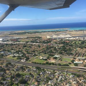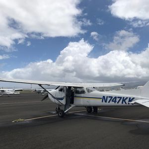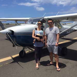 娘と兄と三人で小飛行機体験操縦2人目無料モニターツアーに参加してきました。ホノルル空港までの送迎もしていただき空港内に初めて入りました。普通の旅客機が離着陸しているココカラ操縦して離陸するの?とビックリ❗ 教官の方が飛行機の点検をしっかりとされていました(さすがです)