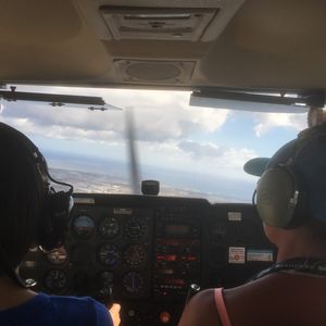 去年の12月は雨でキャンセルになってしまったので今回もお天気が心配でしたが快晴!二人でオアフ島一周できてダイヤモンドヘッドを上から見ることもできて感激!上空から見るオアフ島もステキです!緊張すると思ってたけど解りやすく教えていただけたので楽しめました。送迎も時間どおりで親切でした。今年の12月も再チャレンジしたい!