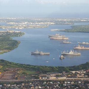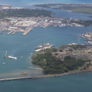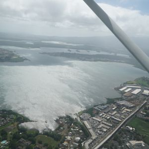 風が強くて揺れが怖かったですが、軍事施設の有る真珠湾上空を飛べたのは驚き。