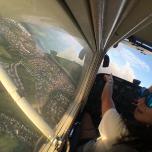 飛行機が離陸するとあっという間に高度が上がり、ハワイの街並みや海岸線を見渡すことができました。空から見るハワイは本当に綺麗で忘れられない景色になりました。飛んでいる間は手に汗握るほど緊張しましたが、空から見る絶景と飛行機を操縦する感覚はとても素晴らしかったです!とても良い経験ができました!