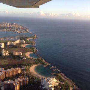 ホテルまで迎えに来てくださったのですが、直後土砂降り。雨かなぁと心配してましたが、乗るときには快晴!虹もたくさん出て来て、とてもキレイでした!30分の体験フライトでしたが、大人2人と1歳の子供の参加で、大人2人共操縦体験でき、大満足です。パイロットの比嘉さんも気さくな方でした^ ^