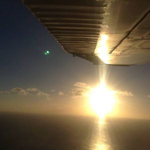 滑走路を移動している際に、「離陸もやってみましょうか」と提案され緊張はピークに。しかし隣で補佐してくださるため、意外なほど簡単に離陸もできました。空中での操縦もすぐに慣れ、ハワイの海に沈む夕日を眺めながらのフライトは本当に最高でした。