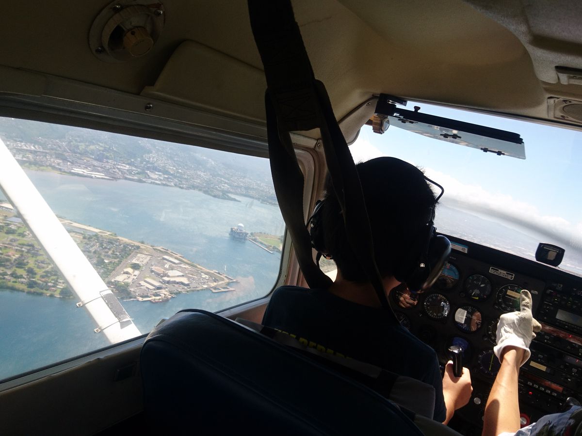 体験操縦2回目の私と初めての息子とで参加しました。途中の小さな滑走路で操縦を交代しました。そこでタッチアンドゴーの体験をしました。パイロットは、若い女性のパイロットで優しく詳しく教えてくださいました。パールハーバーやハレイワを旋回し空からの眺めを堪能しました。次もまた参加したいです。