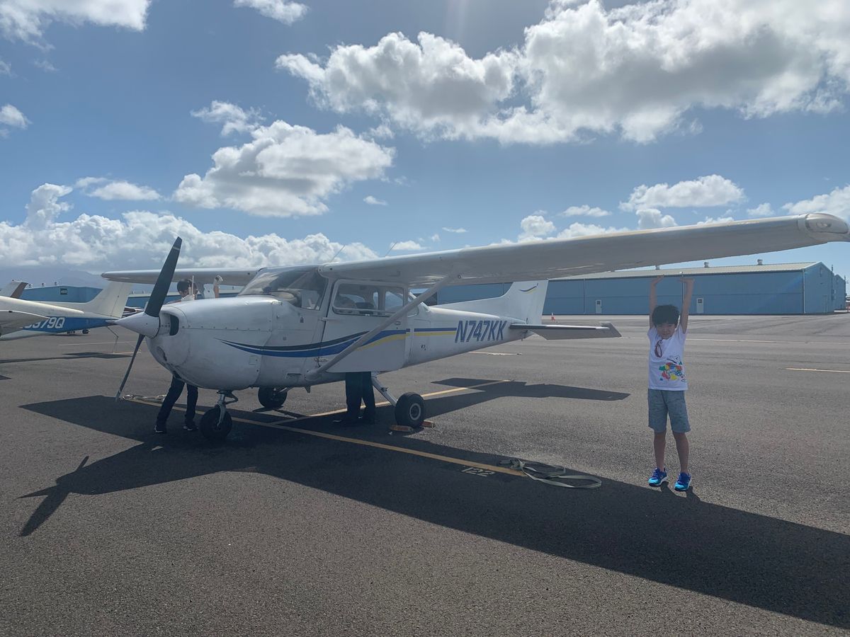9歳の息子が体験しました。ガイドさん操縦士さん共に日本人の方で安心して参加出来ました。ヘリコプターなどの経験も無かったので、駐機場で真近にセスナ機などを見るだけでも興奮しました。セスナ機の中は想像通り狭く計器も複雑な感じでしたが、的確に教えて下さり子供も一生懸命にやっていました。後ろの席に親が座り動画で撮っていましたが、酔いやすいからとアドバイスされ、案の定最後には少し気分が悪くなっていたので、1番短い30分で充分でした。後ろからだと子供の後ろ頭しか取れないのですが、パイロットの方が途中で私のスマホで代わりに子供の運転姿を撮ってくれたのも嬉しかったです。天気も最高で大型ジェット機からの景色とは全く違った素晴らしいハワイの眺めで、本当に感動でした。子供の希望で参加して正直怖がらないか心配でしたが、日本では出来