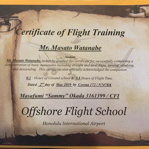 人生で初めてのセスナ機で、操縦出来て感動しました。もちろん、緊張しましたが、パイロットの方の適切なアドバイスを頂き、何とか操縦も出来て楽しめました。また、ハワイに来た時は、絶対に乗りたいと思います。この感覚は体験して初めて分かると思います。