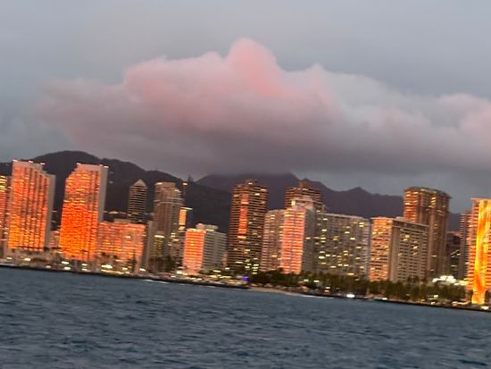 一度は体験したかったサンセットセーリング!砂浜から見る景色とは違うダイヤモンドヘッドやホノルルを一望!海風や音楽がテンションを上げてくれます。旅行最終日の夜だったので楽しかった思い出と共に記憶に残る体験でした。