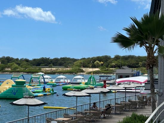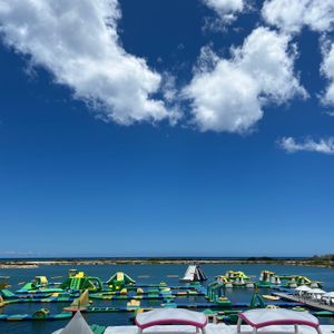 以前沖縄の万座ビーチで水上アスレチックをやりましたが、WaiKaiの方がアスレチックが広く、またスリリングなものが多かったです。特に巨大滑り台は大人気でした。