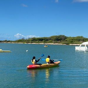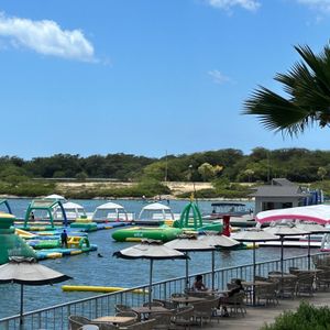 中学生の娘達を連れて初めて行く場所でした。現地のガイドの方は日本の方で最初から最後まで親切丁寧に説明され、ほとんど不安もなかったです。時間前にカヤックなども案内してくれて空いてるうちに体験できました。水上アスレチックも広くて、初老の私でもカメラマンしながら楽しみました。サーフィン体験プランでほんとに乗れる??と不安でしたが、インストラクターの方と言葉は通じないけど雰囲気も優しくて手をとってサポートしてくださっていたので、最後には1人で波乗りできるようになってました!!ランチもボリュームがあり食べきれないくらいあって美味しかったです。