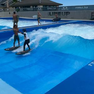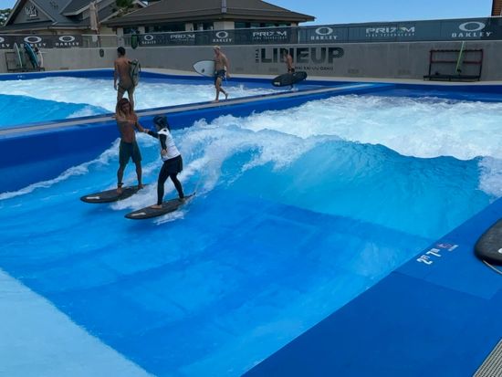 ただ、終盤に長男がボードから落下したあと上手く後部に流されず、波の中に取り残されてしまい、インストラクターの方が急いで救出に向かう&もう1人のスタッフの方が波を停止するという緊迫した事態になりました。