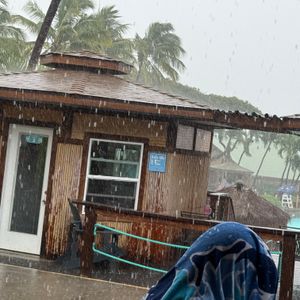 突然のスコール!さっきまでの青空が嘘のように、あっという間に土砂降りの雨になってしまいました。