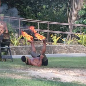 火おこしを体験しました。結構、大変でした。中々、火が着きませんでした。何が良かったかと言うと、ファイアーショーは最高でした。女性が2器なファイアースティックを操って凄かったです。男性の方は大勢でのパフォマンスも良かったです。今まで見た、ファイアーショーでは一番です。