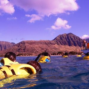 運が良かったのか、とても多くの野生のイルカに遭遇することができました。私はシュノーケリングではタイミングが合わず、水中から見ることはできませんでしたが、他の方たちは見れたとのことでした。しかし、船上からたくさん、それも間近でイルカを見ることができたのでとても満足しています。さらに、遠くからですがクジラも見ることができ、とても良い体験ができました。ハワイならではの最高のツアーでした!スタッフの方たちも親切で、また機会があれば参加したいです。